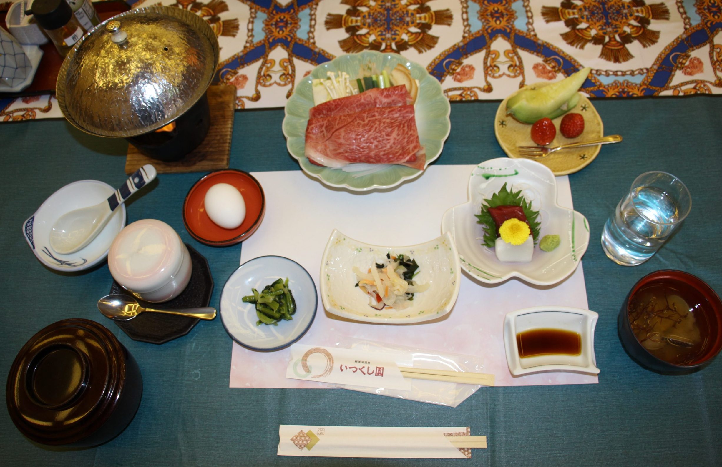 温泉に入って、心も身体もぽかぽかになったところで豪華な食事をいただきました。